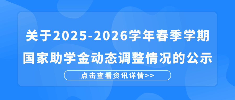 2026. 03全体师生:为精准落实国家助学金发放政策,确保资助资金规范、精准发放至符合条件的学生手中,校领导高度重视此项工作,专门召开会议部署安排,要求各学院对当前享受国家助学金的学生逐一开展排查工作,对不符合资助条件的学生暂停发放资助资金。经排查,全校获得国家助学金中服兵役学生13人、退学1人、休学3人,共计特别困难:6人,一般困难11人。学校根据省厅相关规定进行替补,并于2026年3月16日-3月20日进行公示。接受广大师生的共同监督,...