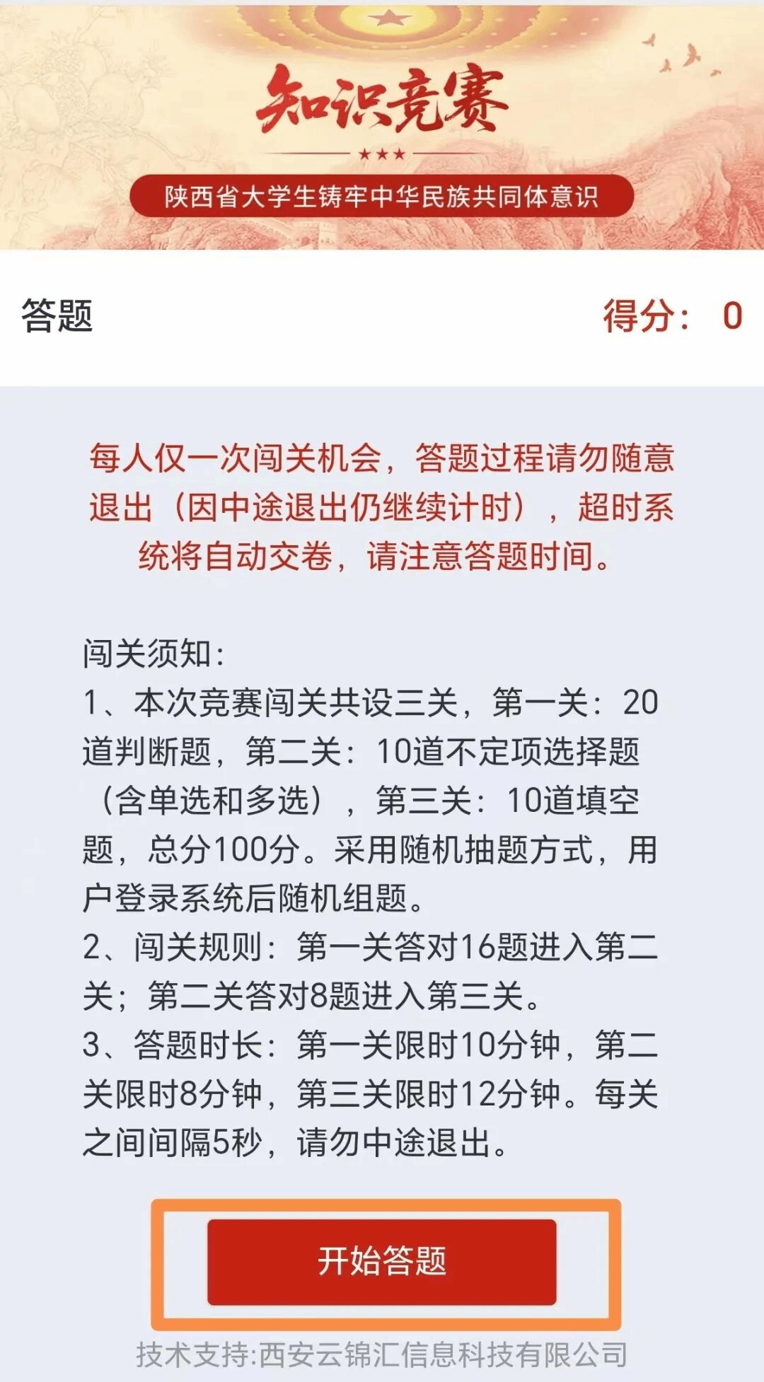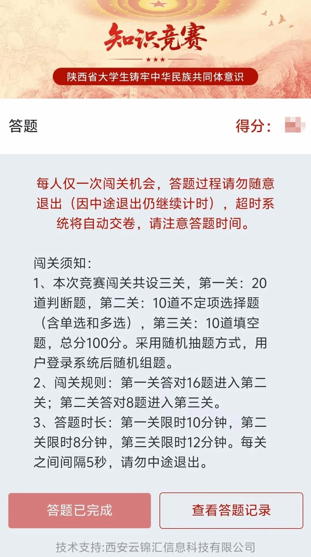 陕西省大学生铸牢中华民族共同体意识知识竞赛网络答题