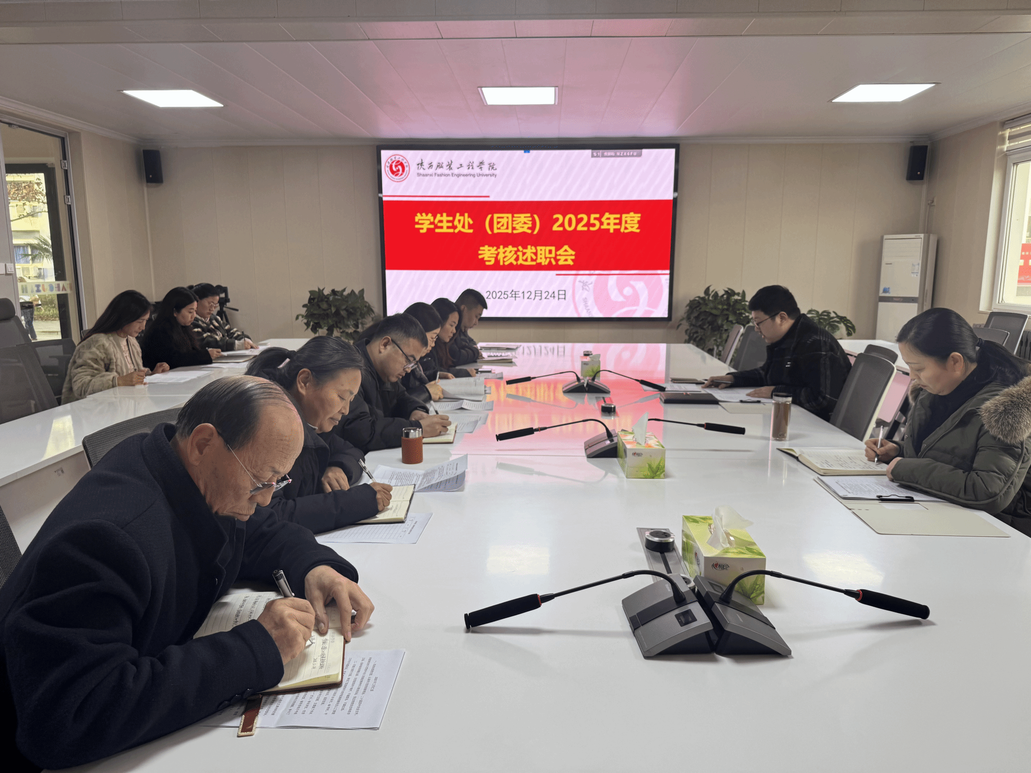 为全面总结2025年度学团工作成效,客观评价教职工履职表现,精准梳理工作亮点与改进方向,12月24日下午,学生处(团委)2025年度述职评议会在行政楼第三会议室召开。校党委副书记刘继兵、人事处副处长何小侠、学生处副处长董良超组成评议小组,对述职情况进行专业点评与量化评分。学生处(团委)全体职员共11人参加会议,会议由学生处副处长董良超主持。