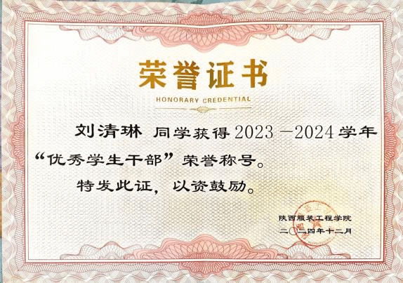 在学生工作与科研实践中,刘清琳同学同样尽职尽责。作为陕西服装工程学院英语协会竞赛部副部长,她精心策划英语学习活动,组织会员参与各类英语竞赛,助力同学们提升语言技能;作为教育学院教学信息员,她及时收集同学们的教学反馈,搭建起师生沟通的桥梁,为教学质量提升贡献力量。此外,她还主持大学生创新创业项目“银龄康旅”,带领团队探索适老化文旅服务模式,其参与的大创项目“榫卯新趣—潮玩创艺局”更成功入选省赛,在实践中实现了从理论到创新的跨越,也因出色表现获评“优秀学生干部”。