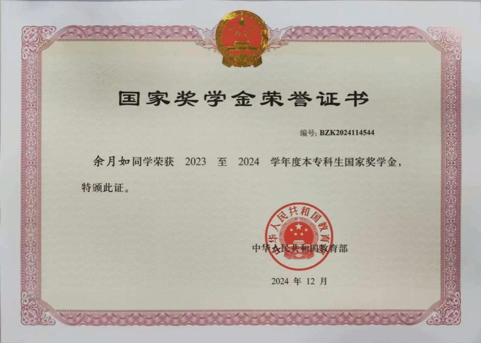 “路漫漫其修远兮,吾将上下而求索。”余月如深知,每一份成绩的取得都离不开国家政策的支持、学校的培养和老师的悉心指导。作为国家奖学金的获得者,她始终保持谦逊低调的态度,将这份荣誉转化为继续前行的动力。
