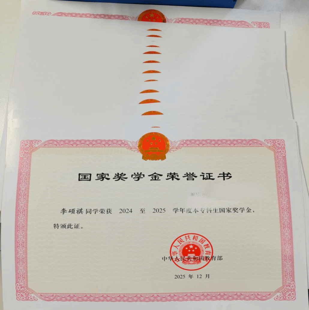 国家奖学金荣誉既是肯定,更是责任与鞭策。希望全体获奖学生珍惜荣誉、戒骄戒躁,将这份认可转化为砥砺前行的不竭动力,在今后的学习与生活中坚守初心、锤炼本领,充分发挥先锋模范作用,带动身边同学勤学笃行、不负韶华。愿全体学子以榜样为引领,在青春的赛道上奋力奔跑,勇担时代使命,书写更加出彩的人生篇章。