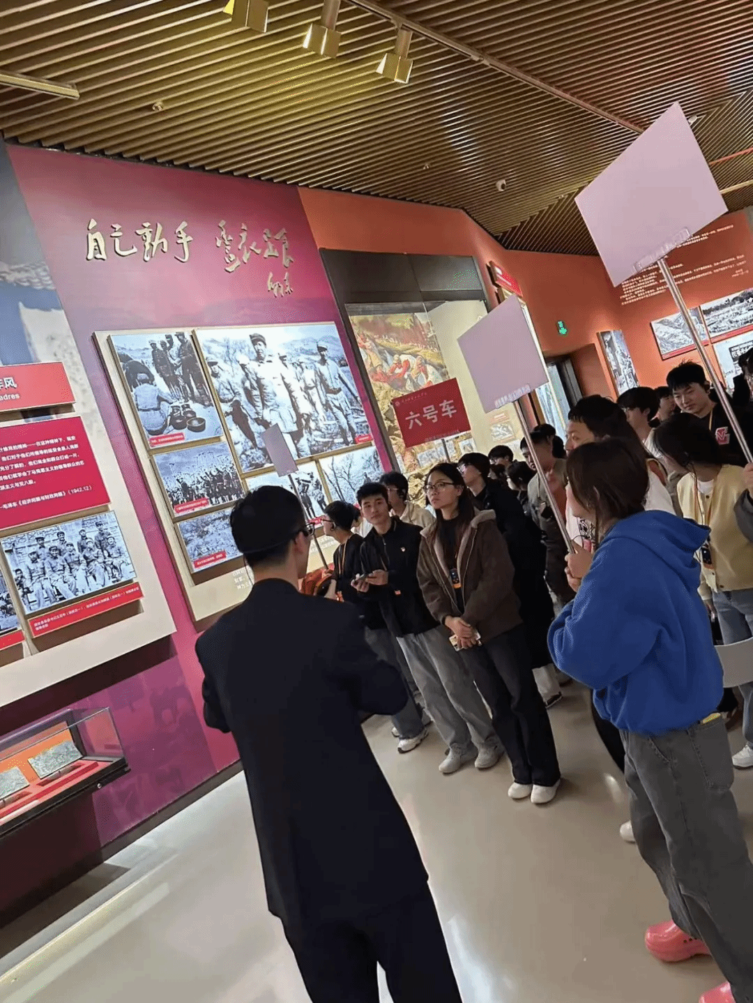 11月9日上午,我校研学团来到了这里,朴素的窑洞、简朴的陈设,与在此诞生的伟大思想形成了鲜明对比。走在毛泽东、周恩来、朱德等老一辈无产阶级革命家曾经生活战斗过的地方,师生们感触颇深。在中共七大会址——中央大礼堂,大家仰望主席台,仿佛能听到历史深处传来的掌声。这里的一砖一瓦、一草一木,都是对“实事求是、艰苦奋斗”最直观、最深刻的诠释,为思政课教学提供了最鲜活的素材。在中共七大会址前,本次研学授课导师勉励同学们铭记峥嵘岁月,把延安精神镌刻进青春奋斗征程,艰苦奋斗、实事求是,全心全意服务党和人民事业。